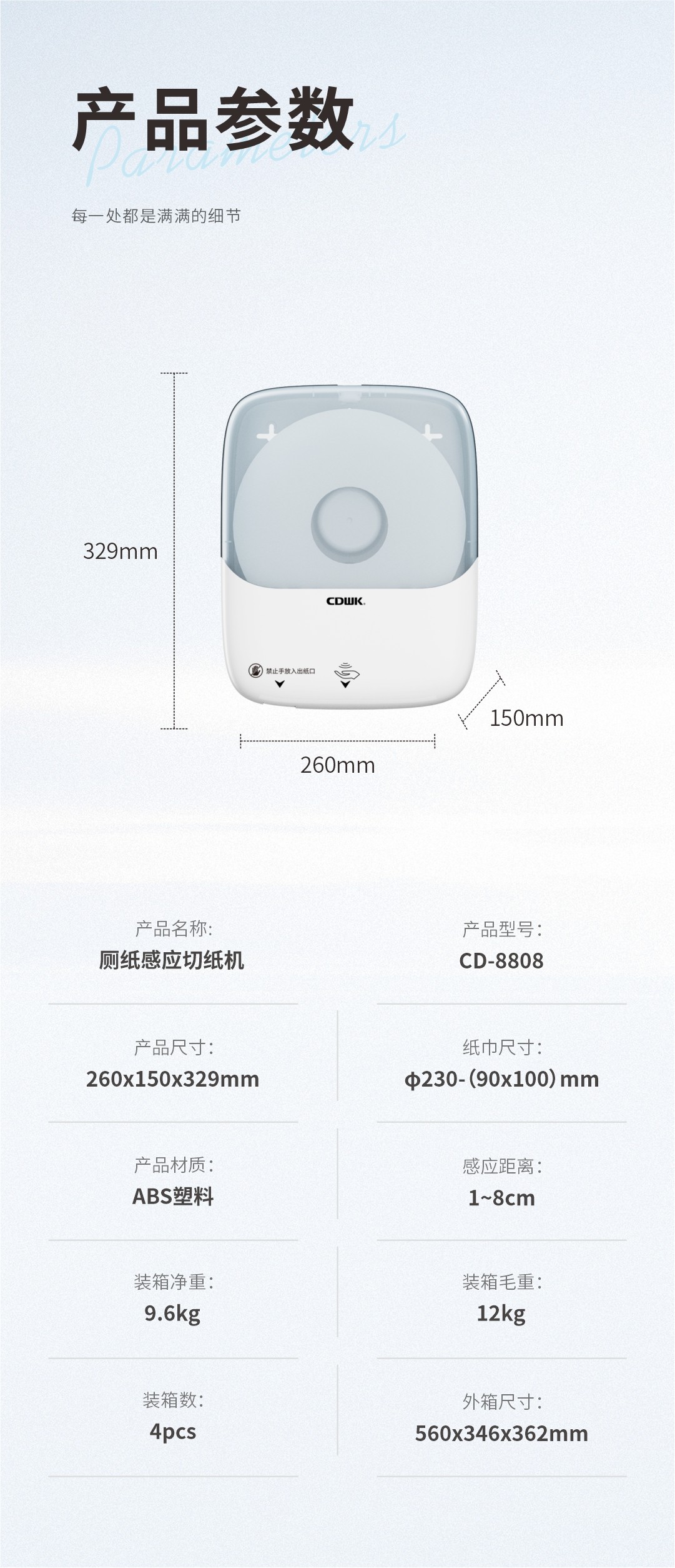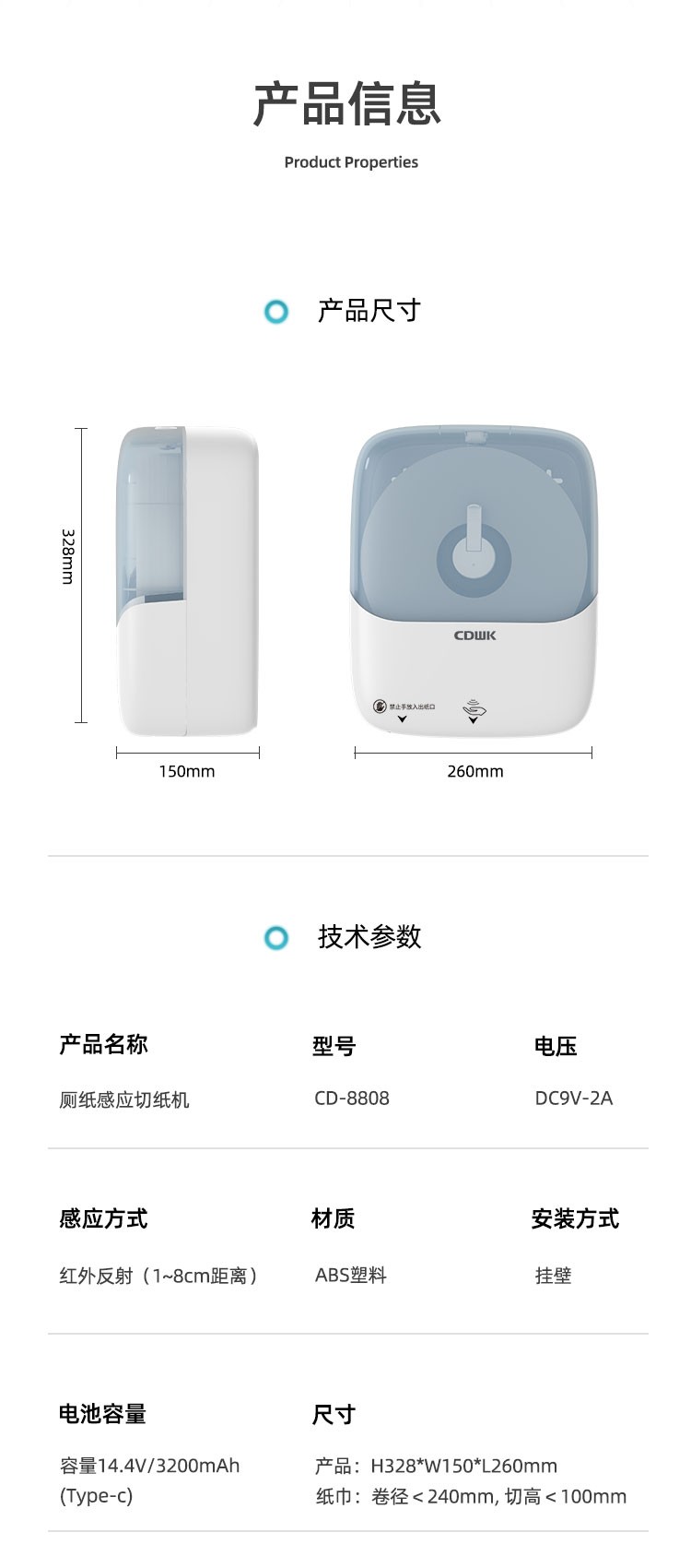 紙巾尺寸:Φ230x100mm